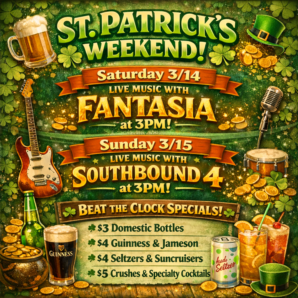 Join us for St. Patrick's Weekend! Live Music and Beat the Clock Specials!